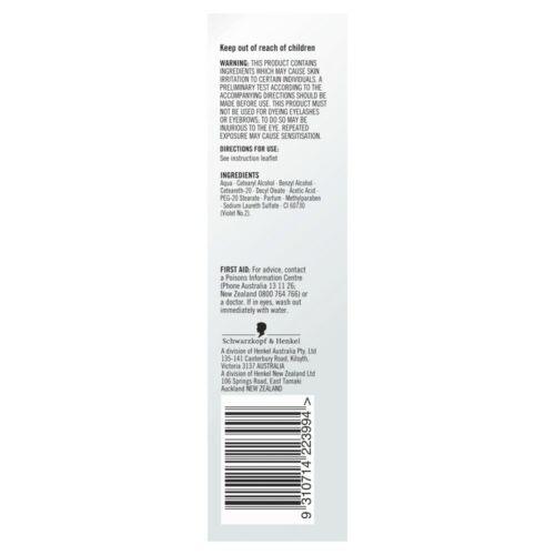THIS PRODUCT CONTAINS INGREDIENTS WHICH MAY CAUSE SKIN IRRITATION TO CERTAIN INDIVIDUALS. A PRELIMINARY TEST ACCORDING TO THE ACCOMPANYING DIRECTIONS SHOULD BE MADE BEFORE USE. THIS PRODUCT MUST NOT BE USED FOR DYEING EYELASHES OR EYEBROWS; TO DO SO MAY BE INJURIOUS TO THE EYE. REPEATED EXPOSURE MAY CAUSE SENSITISATION.