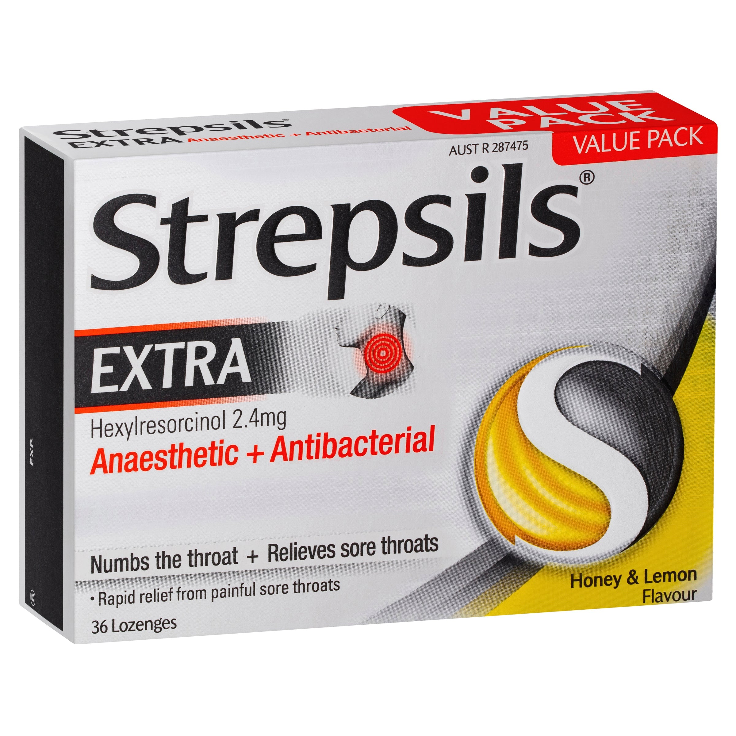 Strepsils Extra Honey and Lemon Fast Numbing Sore Throat Pain Relief with Anaesthetic 36 Lozenges