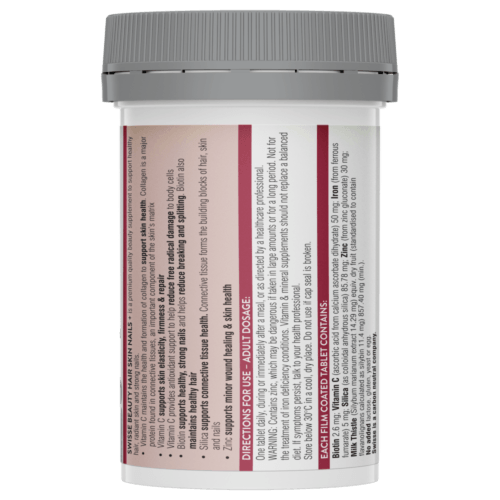 Antioxidant Support: Vitamin C provides antioxidant support to help protect against potential free radical damage. Swisse Ultiboost Hair Skin Nails+ has been formulated based on scientific evidence to provide essent