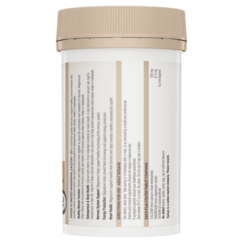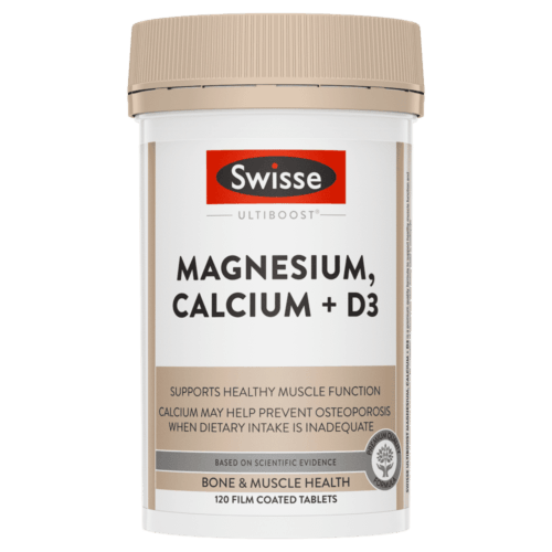 Swisse Ultiboost Magnesium, Calcium + D3 is a premium quality formula to support healthy muscle function and provide a source of calcium which may assist in the prevention and treatment of osteoporosis.
