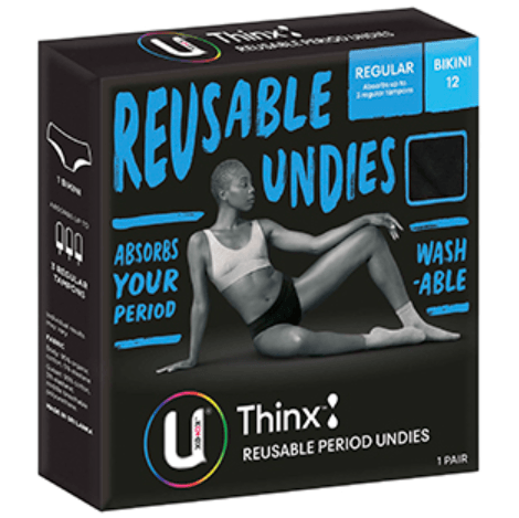 U by Kotex + Thinx Reusable Period Undies are the perfect alternative to single use periods products. Comfortable real underwear made with cotton that keeps you protected throughout the day. With the absorbency of up to 3 regular tampons, it has been specifically designed to help prevent leaks Stylish bikini cut made with cotton means that you don't have to compromise comfort for protection. Wear, wash and wear again with peak performance for up to 40 washes. Each pair wicks moisture to help you feel comfy and fresh every day. Available in a range of sizes and cuts so you can find the right fit for you. For full Fabric details, see ingredients list on pack.