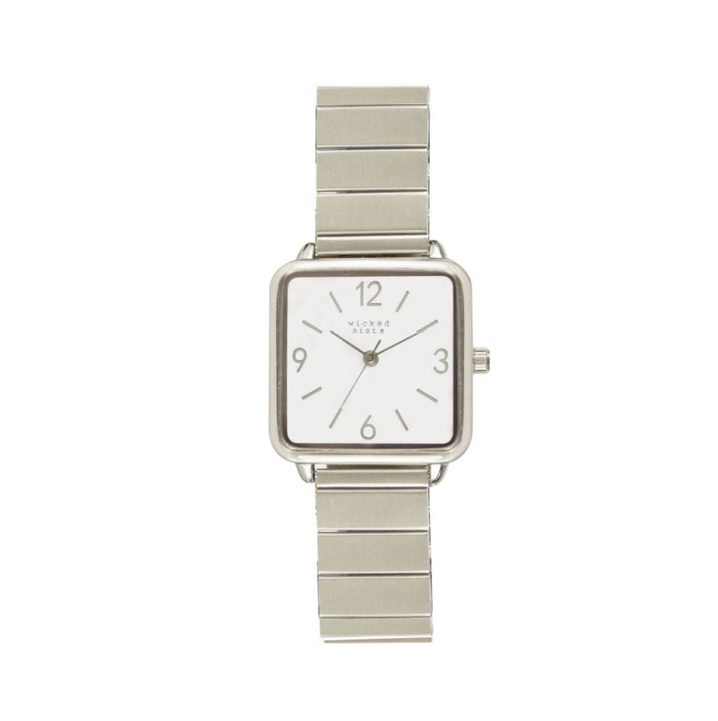 Wicked Sista Watch Square Silver Metal Buckle Band/ White Dial/Numbers & Indexes
